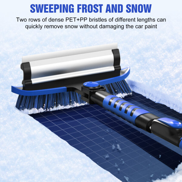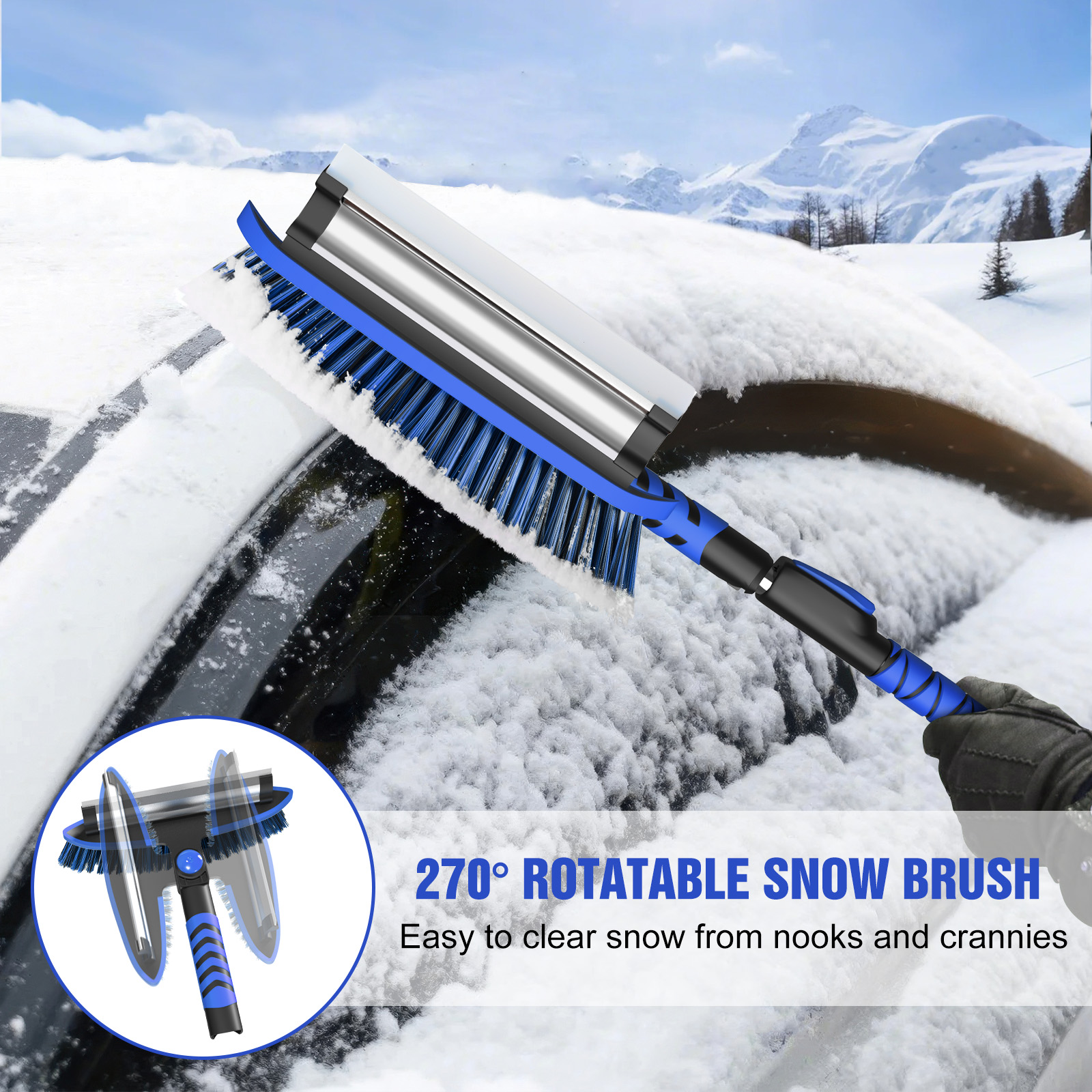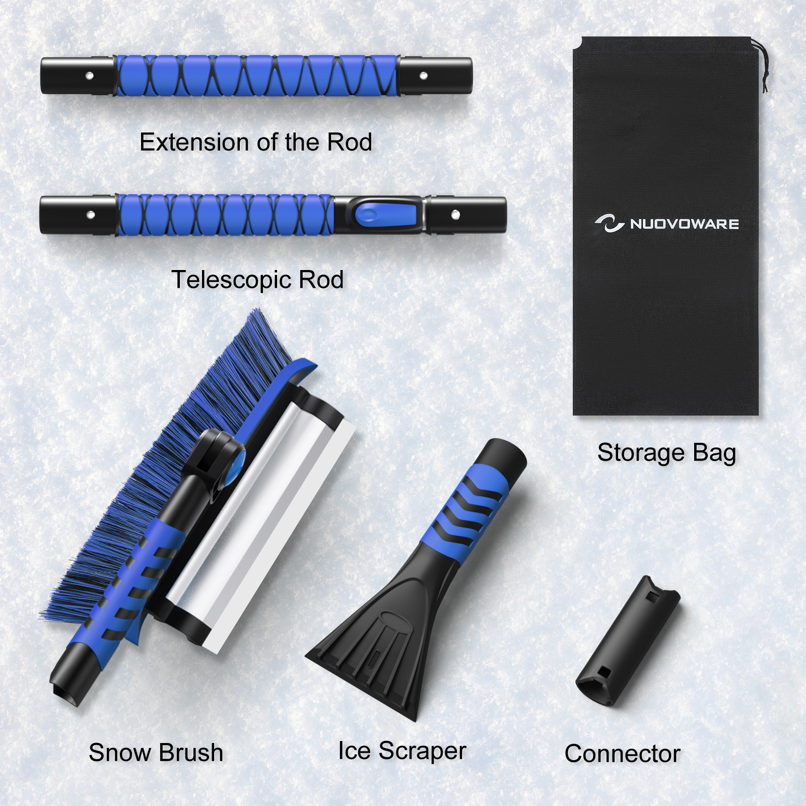 Nuovoware 60″ Ice Scraper and Extendable Snow Brush for Car Windshield, 5 in 1 Adjustable Snow Removal Tools with 270° Pivoting Brush Head for Car Auto Truck SUV, Blue